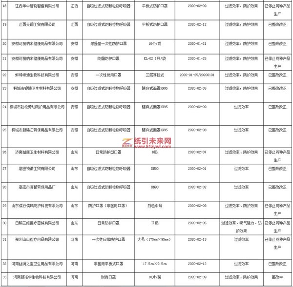 紙引未來(lái)網(wǎng) 4月27日,市場(chǎng)監(jiān)管總局官網(wǎng)公布非醫(yī)用口罩質(zhì)量監(jiān)督抽查不合格批次名單。今年2月以來(lái),市場(chǎng)監(jiān)管總局組織開(kāi)展了非醫(yī)用口罩產(chǎn)品質(zhì)量監(jiān)督專(zhuān)項(xiàng)抽查,共檢出47家企業(yè)的51批次不合格產(chǎn)品,現(xiàn)將非醫(yī)用口罩質(zhì)量監(jiān)督抽查不合格批次名單公布如下。