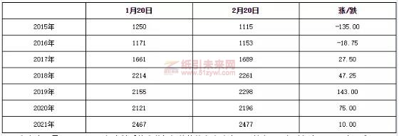 一歷年春節(jié)后廢黃板紙價(jià)格走勢